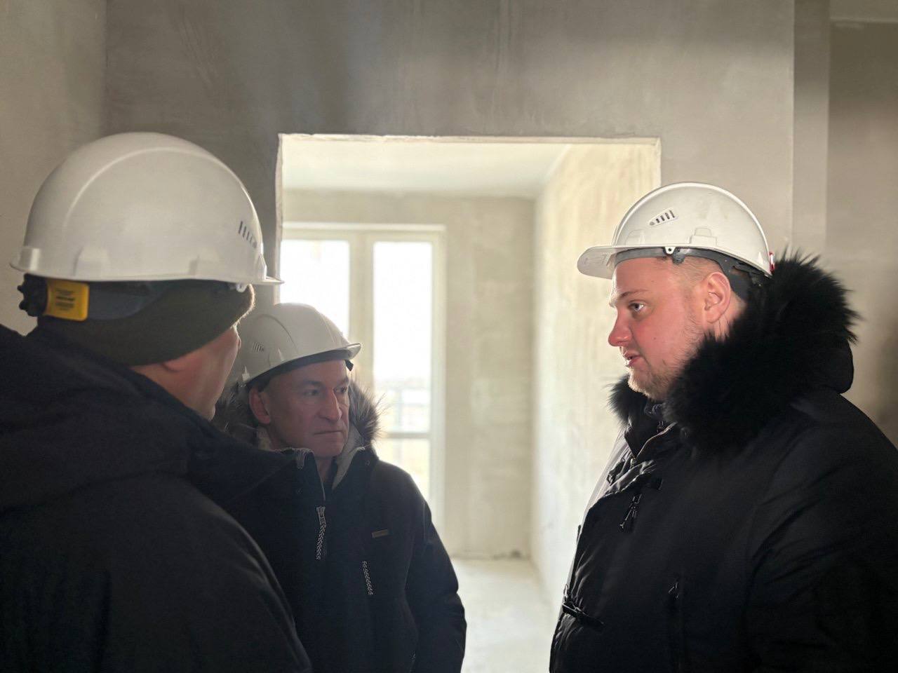 Руководители посмотрели, как идет строительство жилых домов в микрорайоне «Звездный». В настоящее время там возводится два многоквартирных дома. В каждом по 125 квартир. Один из них практически достроен.